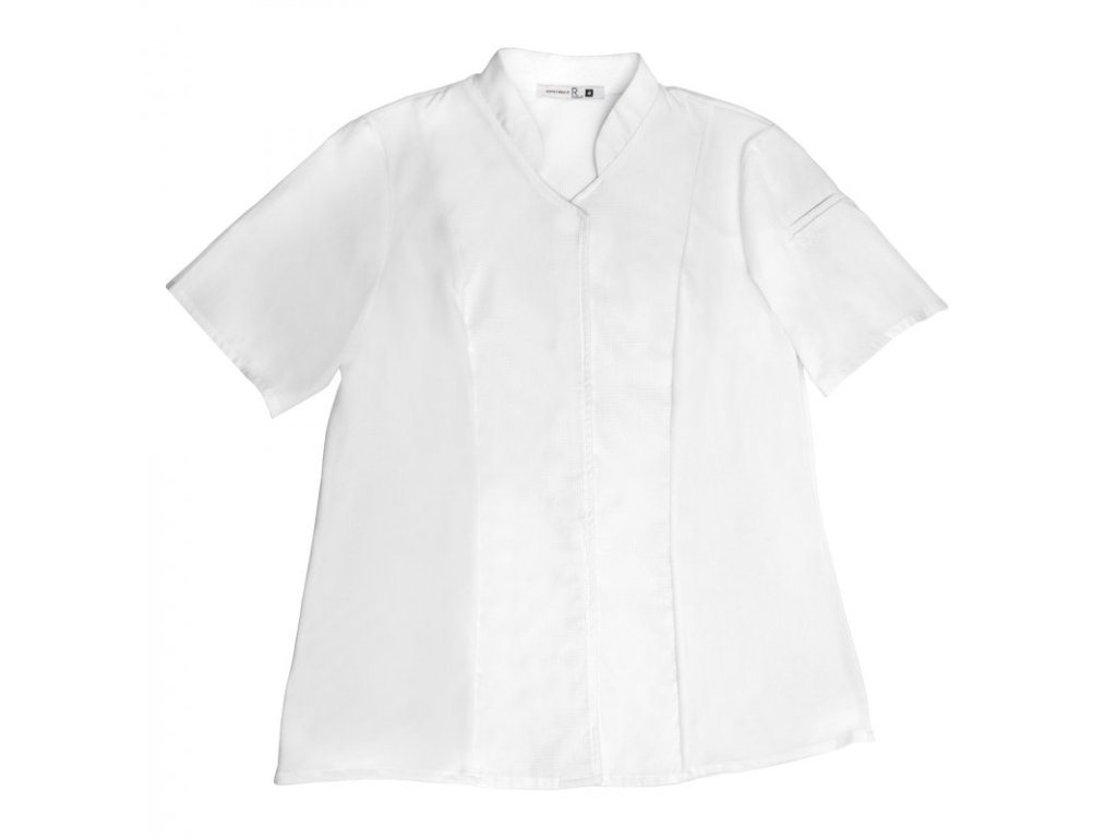 Model Abella značky Robur zaujme svou lehkostí a stylem. Kombinace designu a funkčnosti zajišťuje komfort při práci. Bavlna nejvyšší kvality s elegantní „kostkovanou“ texturou v kombinaci s bočními panely z prodyšné síťoviny s technologií Cool Plus® pro rychlý odvod potu, schnutí vám zajistí opravdovou pohodlnost. Rondon ve vypasovaném střihu má mimo jiné i vkusný stojáček podšitý měkkým materiálem froté, který účinně absorbuje vlhkost, kapsu na levém rukávu, skryté západky a zadní rozparky.Rondon dámský, bílý, kr. rukáv, S