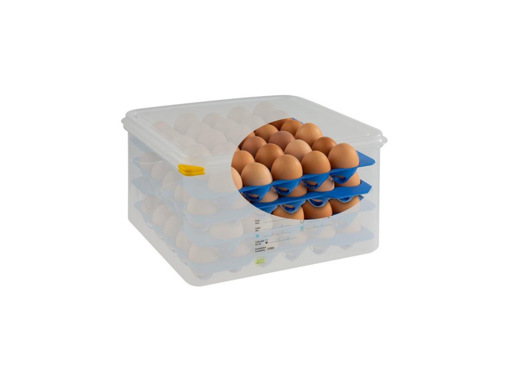 Profesionální box na vejce se vyrábí z odolného a pružného plastu. V sestavě této přepravky se nachází 4 plata na 30 vajec (tedy celkový počet vychází až na 120 ks vajíček). Box i plata lze mýt v myčce na nádobí.