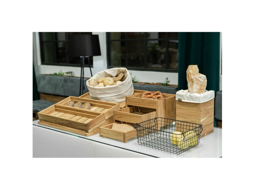 Servírování jídel představuje skutečnou výzvu, protože je klíčové k ohromení vašich zákazníků. Tento nelehký úkol pomůže vyřešit šikovný a praktický box hodící se do každého bufetu. Vyrábí se z dubového dřeva pyšnící se antibakteriálními vlastnostmi a odolností proti poškození, což z něj dělá výrobek, který je nejen krásný, ale i kvalitní. V setu naleznete 3 kusy různých box umožňujících vytvářet různá aranžmá.Box, set 3 ks