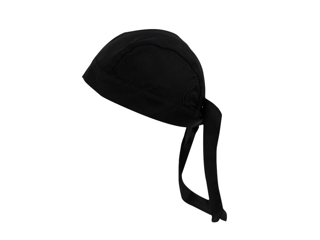 Odolná kuchařská čepice s možností úpravy obvodu na zavazování se skvěle hodí každému kuchaři v kuchyni. Lze ji průmyslově prát.Čepice, černá