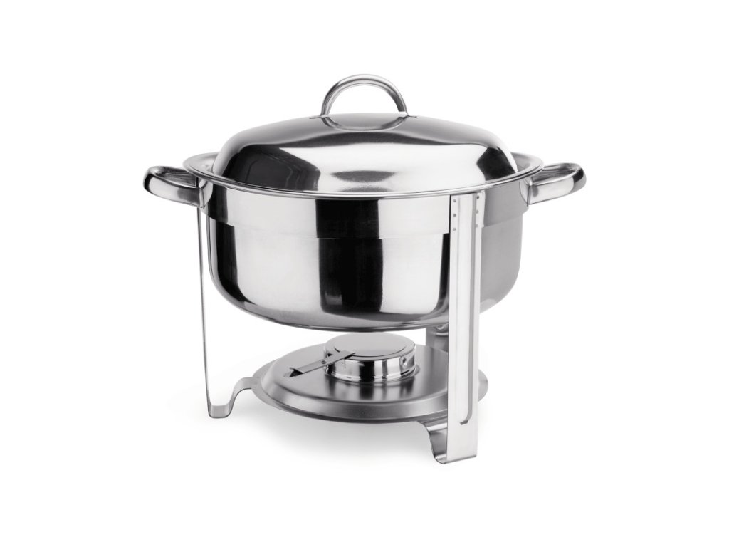 Chafing s nádrží pro hořlavou pastu určený na kulaté gastronádoby se skvěle hodí pro podávání různých polévek. Udrží je příjemně teplé.Chafing nerezový kulatý 7,5 l