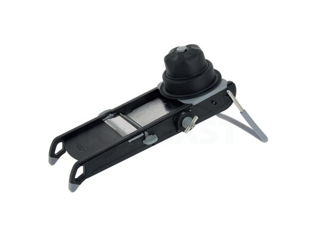 - Součástí balení: oboustranný nůž (hladký, vlnitý), oboustranný nůž julienne (4, 10 mm), ergonomický otočný držák s automatickým přítlakem