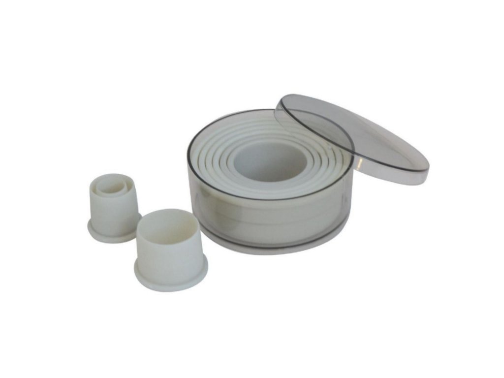 Sada od značky de Buyer obsahuje devět hladkých vykrajovátek, která jsou perfektní volbou pro tvorbu jedinečných dekorací a originálních kreací. Na její výrobu se používá pevný plastový materiál, který byl navržen tak, aby splňoval požadavky profesionálů. Silný horní okraj se pohodlně drží a brání zranění při vykrajování. Po použití můžete dát do myčky.Sada vykrajovátek hladkých 20–100 mm