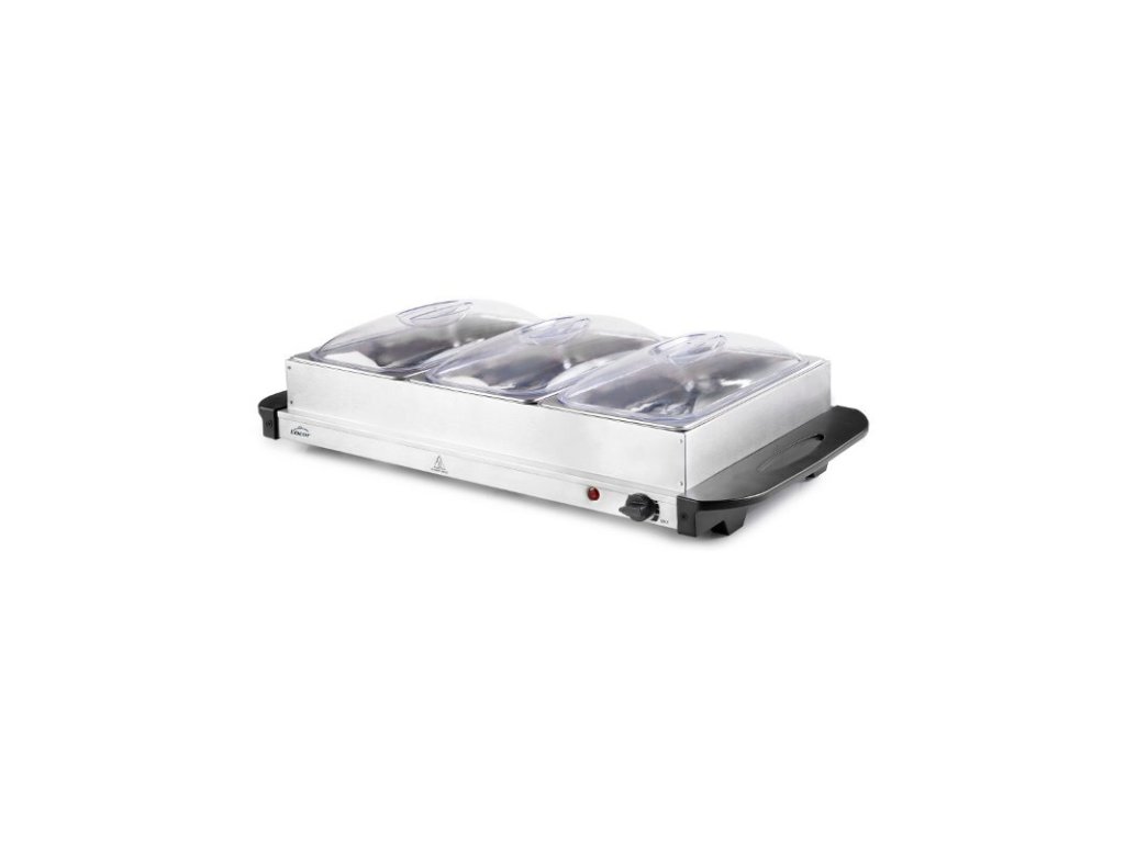 - Kompletní set: 3× GN (2,5 l), 3× transparentní víko a ohřevná deska