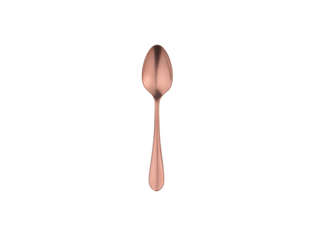 Tato jídelní lžíce zaujme svým měděným leskem a celý stůl tak rozzáří půvabnou jemností a honosným stylem. Je dokonale vyvážená, takže se perfektně drží v ruce. Na její výrobu se používá nerezová ocel 18/10, která garantuje vysokou odolnost proti korozi a dlouhou životnost i při každodenním používání.Grafit, zlato nebo měď jsou v současnosti nejmódnější barvy pro zařizování bytů a restaurací. Skvěle se mísí s monochromatickým aranžmá a dodávají mu jedinečný, módní styl. PVD představuje technologii pro barvení ocelových povrchů. Jedná se o moderní metodu, díky které lze z oceli vyrobit nejen stříbro. Barevný efekt se získává ve speciálních podmínkách pomocí moderních technologií a fyzikálních jevů.Ocel s PVD povlakem je extrémně odolná, neopotřebovává se, nebarví, je rozložena tence a dokonale po celé ploše příboru. Díky tomu vypadají příbory velmi přirozeně a efektně. Na povrchu nezůstávají žádné otisky prstů. Taková ocel také není náchylná ke korozi. Tento povlak je zdravotně nezávadný – vyznačuje se antibakteriálními a antialergickými vlastnostmi.Při mytí v myčce může dojít k opotřebení PVD povlaku ještě před uplynutím záruční doby. Proto doporučujeme příbory mýt ručně.