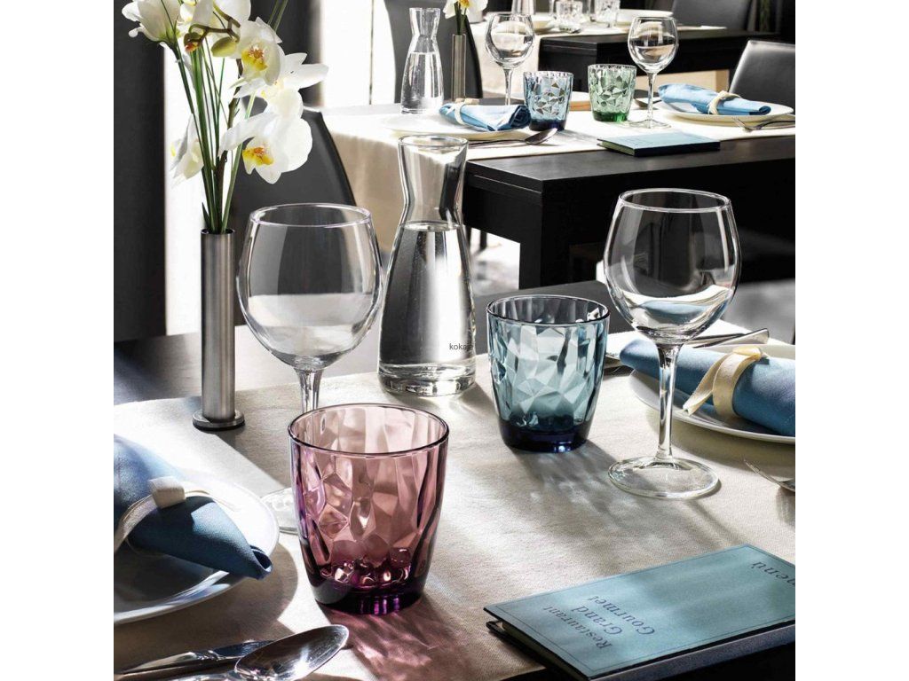 Kolekce Diamond je ikonou stylu a elegance. Tato kolekce zahrnuje širokou škálu produktů: sklenice „cooler“ a DOF, sklenice na vodu, alkohol i misky a talíře v různých velikostech. Všechny výrobky jsou opracovány tak, aby připomínaly strany diamantu a ozdobily váš jídelní stůl. Sklenice nabízíme ve třech barevných provedeních: transparentní, modré a fialové. Produkty v kolekci Diamond jsou ošetřeny zvláštní technologií, která zajišťuje trvalé a brilantní barvy.Výrobce