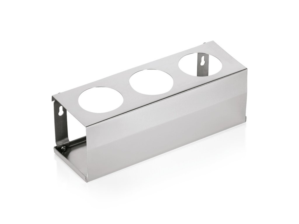 Tento držák se skvěle hodí pro 3 dávkovací láhve. Lze ho zavěsit i na zeď.Držák na dávkovací láhve pr. 7,5 cm