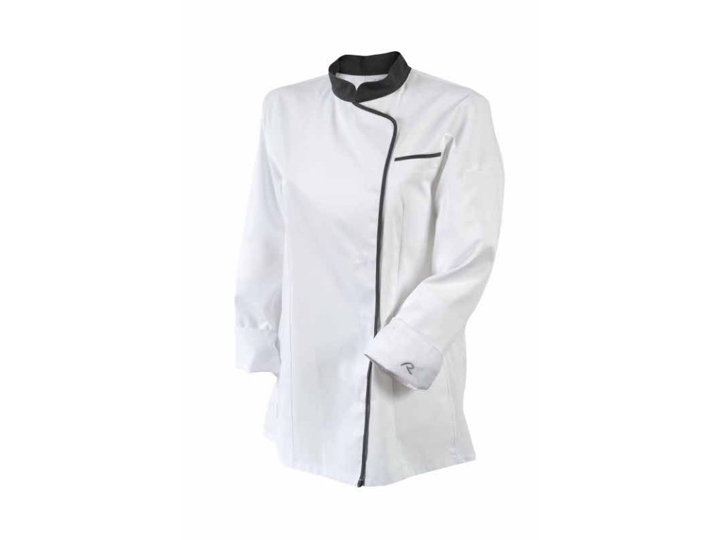 Dámský model Expression značky Robur představuje spojení nadčasové elegance a pohodlí při každodenní práci v profesionální kuchyni. Tento mírně vypasovaný rondon má na bocích panely z prodyšné síťoviny, která odvádí pot a reguluje tělesnou teplotu. Nechybí mu hrudní kapsa a objímka, rozparkované manžety s možností vyhrnutí a jako třešnička na dortu zdobí jej kontrastní lemování a stojáček v šedé barvě. Model ztělesňuje myšlenku, že pohodlí a úhledný vzhled v práci se nemusí vzájemně vylučovat.Rondon dámský, bílý s černým lemem, dl. rukáv, L