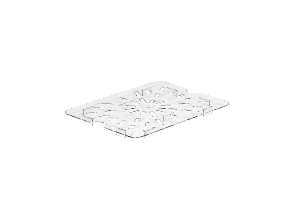 Falešné dno na polykarbonátové a polypropylenové gastronádoby CAMBRO chrání vaše jídlo a jeho chuť. Pomocí děr odtékají tekutiny, a proto je ideální variantou například ke skladování rozmrazujícího se masa nebo mořských plodů na ledě. Tekutiny se tak nedotýkají pokrmů, ale zůstanou na dně nádoby, a jídlo se tak nezkazí.Falešné dno pro gastronádobu GN 1/2