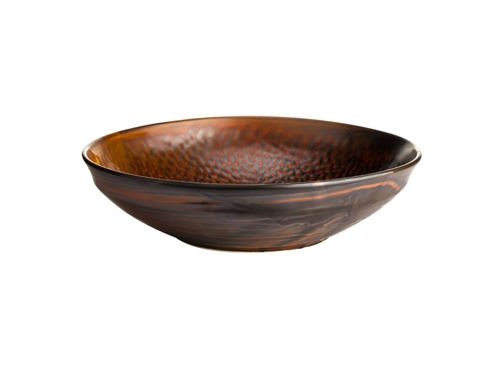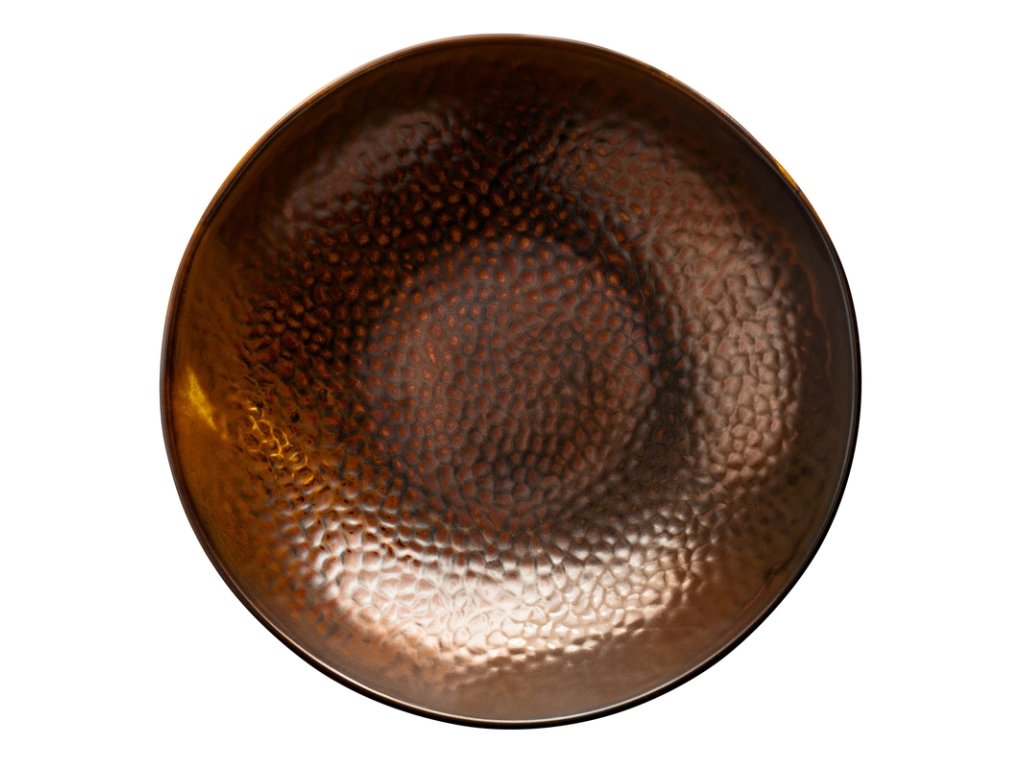 Střední mísa z kolekce Fire od značky Verlo je spojením měděné barvy a působivé struktury. Její jedinečný vzor vznikl pokrytím celého povrchu smaltem. Proces vypalování v 1 380 °C garantuje vysokou odolnost proti škrábancům a dovoluje ji umýt v myčce. Kombinace kolekce Fire s prvky řady Deep Blue je výjimečně kreativní nabídkou pro lidi, kteří hledají neobvyklé pokrmy. Míchání barev staré mědi s výraznou, extrémně módní kobaltově tmavě modrou se skvěle hodí jak do odvážných, moderních interiérů, tak do těch s nádechem extravagance. Skvělým doplňkem takové sady budou příbory Destello Copper. Okouzlete své hosty špičkovým nádobím a jedinečným uspořádáním stolu.Mísa střední 2,6 l