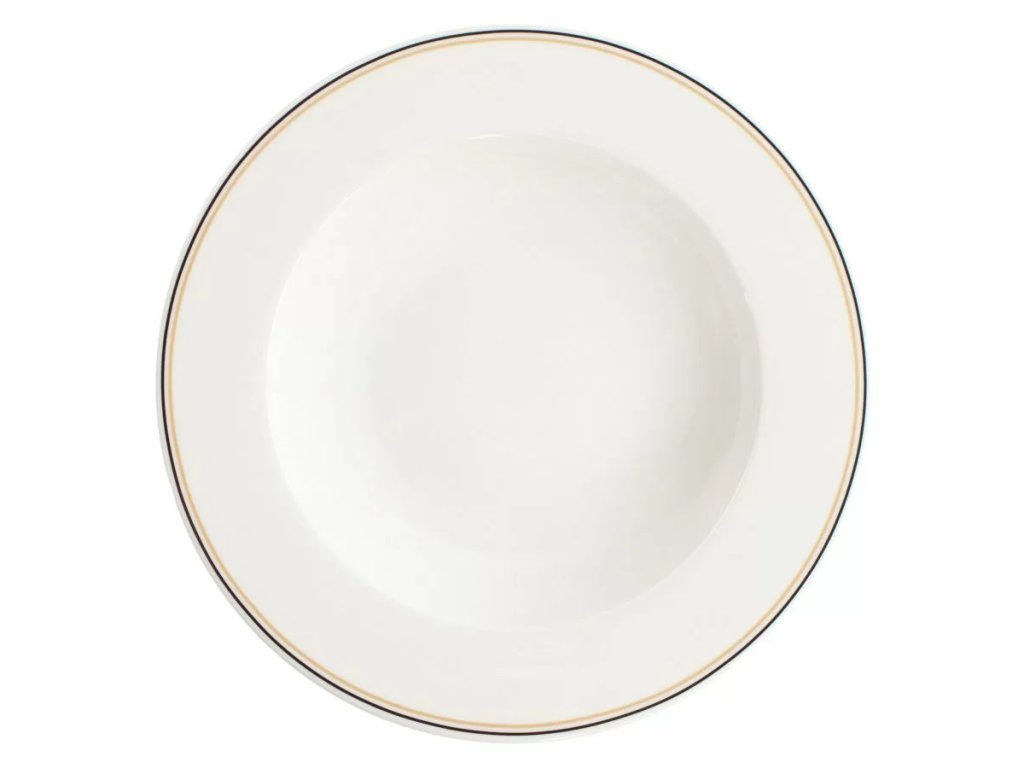 Tento hluboký porcelánový talíř z řady Forte Lina má průměr 26 cm a je určen pro podávání polévek, těstovin nebo rizota v hotelích a restauracích. Provedení v barvě slonové kosti s černo-béžovým dekorem je vhodné pro provozy, které hledají spojení kvality a odolnosti inventáře.