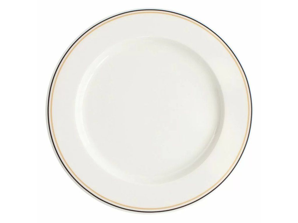 Tento mělký talíř z řady Forte Lina o průměru 21 cm je určen pro podávání předkrmů, dezertů nebo pečiva v hotelech a restauracích. Provedení v barvě slonové kosti s černo-béžovým dekorem je vhodné pro provozy, které hledají spojení estetiky a odolnosti svého inventáře.