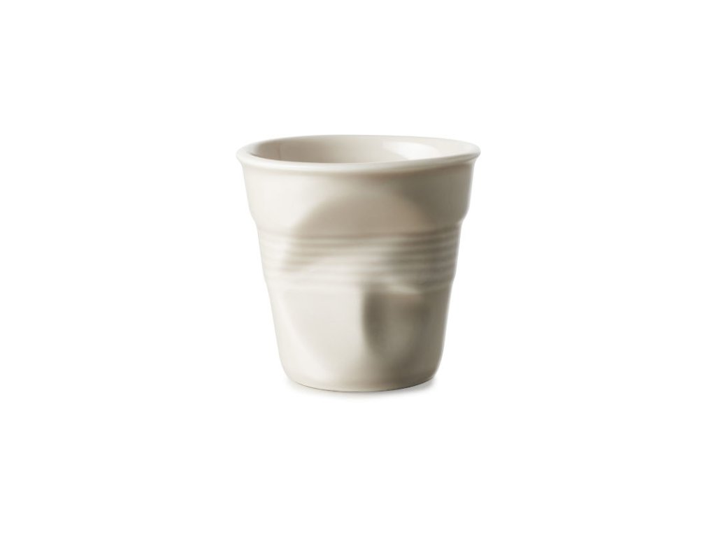 Smaltovaný Froissés pohárek patří mezi nejúspěšnější kousky porcelánu francouzského výrobce. Líbivá barva šedého oblázku působí jemně a čistě. Nevšední design zaujme každého na první pohled, a navíc své praktické využití najde zkrátka všude. V pohárku upečete mini muffiny, suflé a další moučníky, připravíte zmrzku a samozřejmě perfektně poslouží při servírování horkých i studených nápojů. Navíc se pyšní svou odolností a jednoduše čistí, protože kamarádí i s myčkou. Tento zmačkaný pohárek už jen tak neskončí v koši, ale vkusně ozdobí jakýkoliv interiér i obyčejné posezení u kávičky. Navíc ho můžete doplnit elegantním tácem s prolisy dělanými přímo na „Froissésky“, což více znásobí atmosféru.Pohárek 80 ml, šedý oblázek
