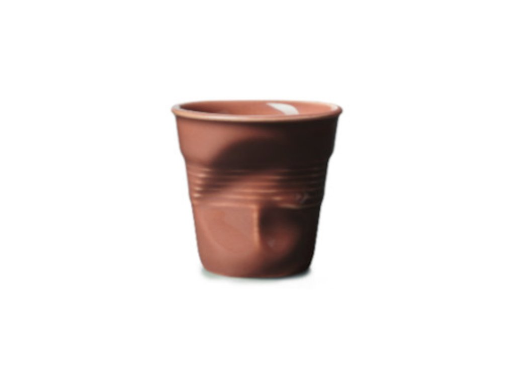 Smaltovaný Froissés pohárek patří mezi nejúspěšnější kousky porcelánu francouzského výrobce. Líbivá hnědá barva působí přírodně a vkusně. Nevšední design zaujme každého na první pohled, a navíc své praktické využití najde zkrátka všude. V pohárku upečete mini muffiny, suflé a další moučníky, připravíte zmrzku a samozřejmě perfektně poslouží při servírování horkých i studených nápojů. Navíc se pyšní svou odolností a jednoduše čistí, protože kamarádí i s myčkou. Tento zmačkaný pohárek už jen tak neskončí v koši, ale vkusně ozdobí jakýkoliv interiér i obyčejné posezení u kávičky. Navíc ho můžete doplnit elegantním tácem s prolisy dělanými přímo na „Froissésky“, což více znásobí atmosféru.Pohárek 80 ml, hnědý