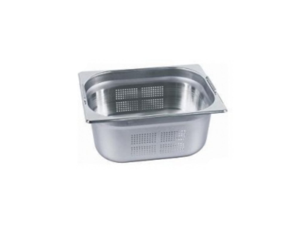 Děrovaná gastronádoba GN 1/2 z řady Standard s úchyty se perfektně hodí k vaření, ohřevu nebo výdeji jídla. Nerezová ocel 18/10 (18 % niklu, 10 % chromu) zaručuje lesk, vysokou odolnost i dlouhou životnost a dovoluje umýt gastronádobu v myčce.Gastronádoba děrovaná GN 1/2 150 mm s úchyty