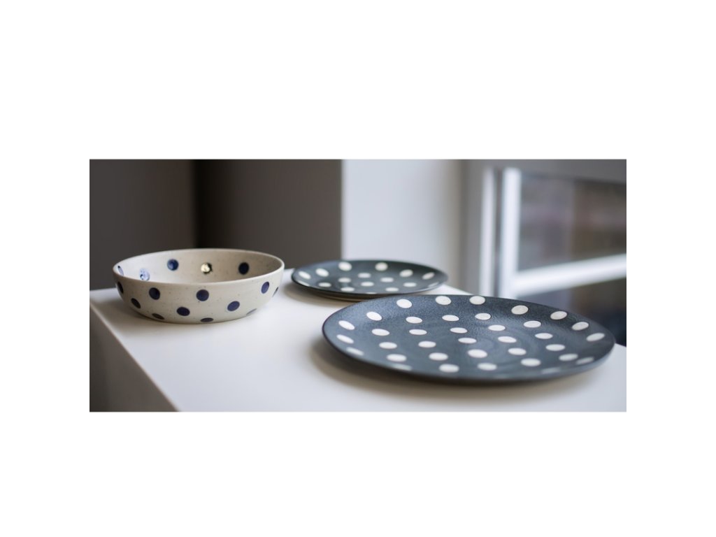Talíř kolekce Grochy zaujme svými nepravidelnými tvary a zejména vkusnými a taktéž různorodé puntíky, které navozují nostalgický a rustikální pocit. Každý kousek představuje originální ručně zpracované dílo, což mu přidává jedinečnou hodnotu. Ať už tedy naservírujete cokoliv, všechna kulinářská díla na tomto kouzelném talíři vypadají senzačně. Navíc špičkový porcelán zajišťuje kvalitní zpracování, odolnost a dlouhodobou radost z užívání.Talíř mělký pr. 29 cm