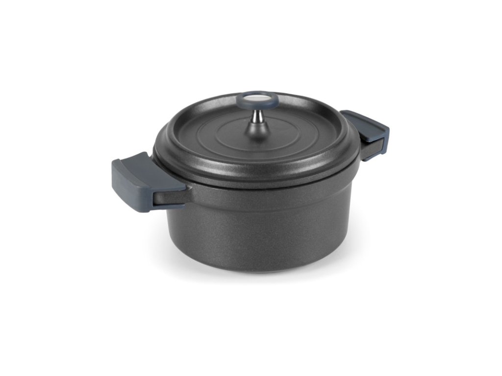 Kulatý hrnec o průměru 28 cm v černé barvě doporučujeme provozům, které pracují s vyššími objemy jídel – školním jídelnám, firemním kantýnám nebo event cateringům. Je vyroben z roztaveného hliníku, díky čemuž vyniká rovnoměrnou distribucí tepla – bez přepalování, bez ztráty tekutin. Hrnec tak zajišťuje, že potraviny zůstanou šťavnaté, s plným zachováním chutí, vitamínů i vůní. Vnitřní konstrukce poklice je navržená tak, aby kondenzační voda uvnitř nádoby kapala zpět na pokrm a neudržovala se na víku. Vaření s poklicí přispívá k pozvolnému zvlhčování pokrmů bez nutnosti dolévání vody či vývaru. Vhodný pro dušení velkých kusů masa, vaření příloh, polévek nebo zeleninových směsí.