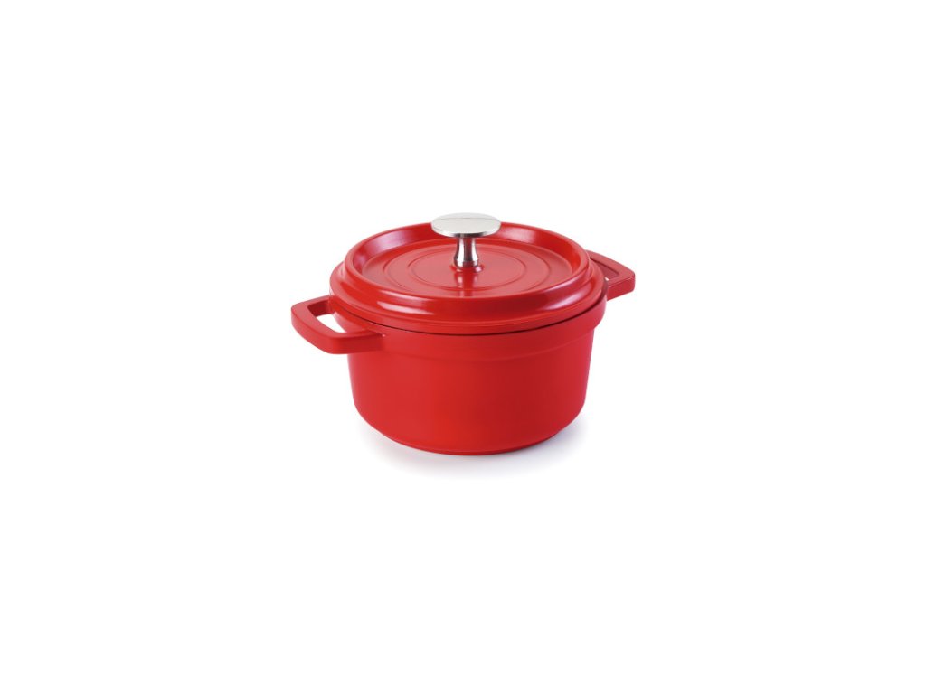 Mini hrnec o průměru 10 cm v červeném provedení bude skvělým servírovacím doplňkem pro degustační porcí přímo na stůl. Oblíbí si ho restaurace, bistra nebo cateringové služby od předkrmů, přes zapékané pokrmy, až po sladké dezerty typu crème brûlée nebo čokoládový fondant. Praktická madla po stranách usnadňují manipulaci, zatímco víčko s nerezovou rukojetí dobře sedí a udržuje teplotu uvnitř nádoby. Víčko má nerezovou rukojeť, díky kterého se nemusíte bát popálení zacházení. Při vznikající kondenzaci hroty zespod poklice zajistí, že kapky budou kapat na pokrm, který se díky tomu nevysuší. Hrnec je vyroben z roztaveného hliníku, zaručuje rovnoměrnou absorpci a distribuci tepla, díky kterého se vaši kuchaři nemusí bát připálení či přehřátí. Během vaření pokrmy neztrácejí šťávu, zachovávají si všechny živiny a vitamíny.