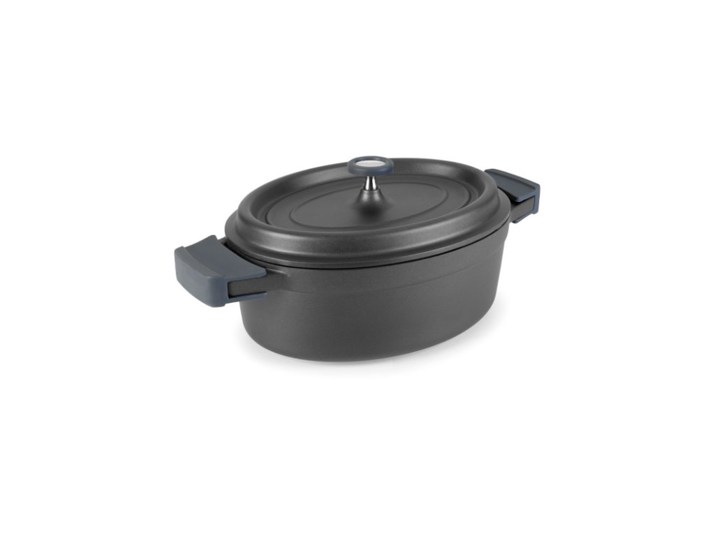 Oválný hrnec s rozměry 26 x 20 cm je kompaktní, ale mimořádně efektivní pomocník pro kuchyně, které potřebují připravovat jednotlivé porce nebo malé dávky pokrmů plné chutí. Je ideální pro servírování dušeného masa, malých ryb, zeleninových směsí nebo šťavnatých omáček. Je vyroben z roztaveného hliníku, díky čemuž vyniká rovnoměrnou distribucí tepla – bez přepalování, bez ztráty tekutin. Hrnec tak zajišťuje, že potraviny zůstanou šťavnaté, s plným zachováním chutí, vitamínů i vůní. Vnitřní konstrukce poklice je navržená tak, aby kondenzační voda uvnitř nádoby kapala zpět na pokrm a neudržovala se na víku. Vaření s poklicí přispívá k pozvolnému zvlhčování pokrmů bez nutnosti dolévání vody či vývaru.