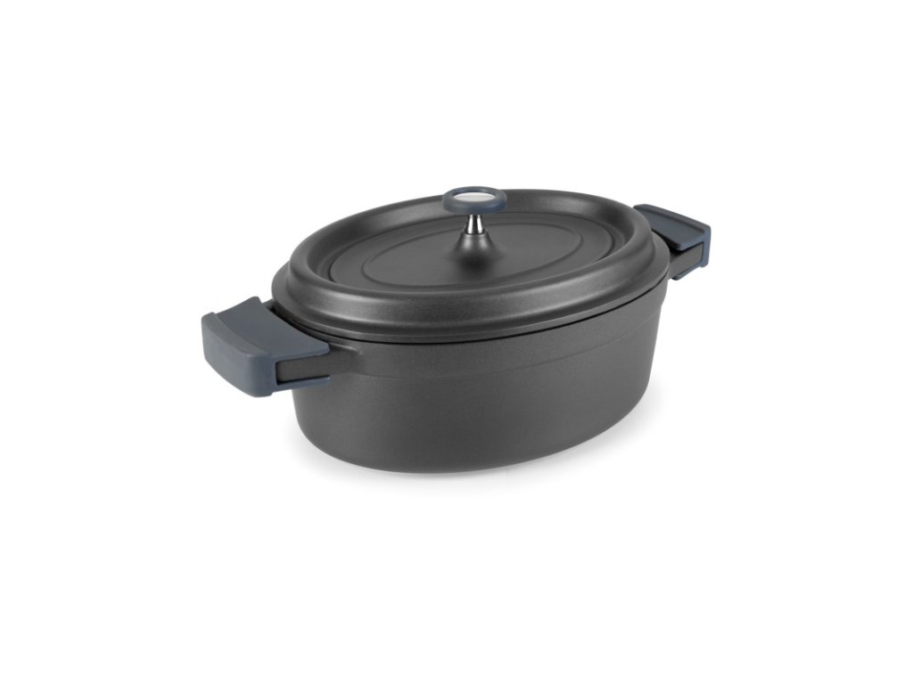 Tento oválný hrnec s rozměry 31 x 25 cm patří do kategorie větších hrnců a najde své uplatnění především v provozech, kde je důležité připravovat větší množství pokrmů s rovnoměrně rozloženou tepelnou energií. Je perfektní pro pomalé pečení ryb, pečené vepřové maso, zeleninové nákypy, ale i syté luštěninové směsi nebo tradiční kuchyni jako je svíčková či hovězí na víně. Byl vyroben z roztaveného hliníku, díky čemuž vyniká rovnoměrnou distribucí tepla – bez přepalování, bez ztráty tekutin. Hrnec tak zajišťuje, že potraviny zůstanou šťavnaté, s plným zachováním chutí, vitamínů i vůní. Vnitřní konstrukce poklice je navržená tak, aby kondenzační voda uvnitř nádoby kapala zpět na pokrm a neudržovala se na víku. Vaření s poklicí přispívá k pozvolnému zvlhčování pokrmů bez nutnosti dolévání vody či vývaru.