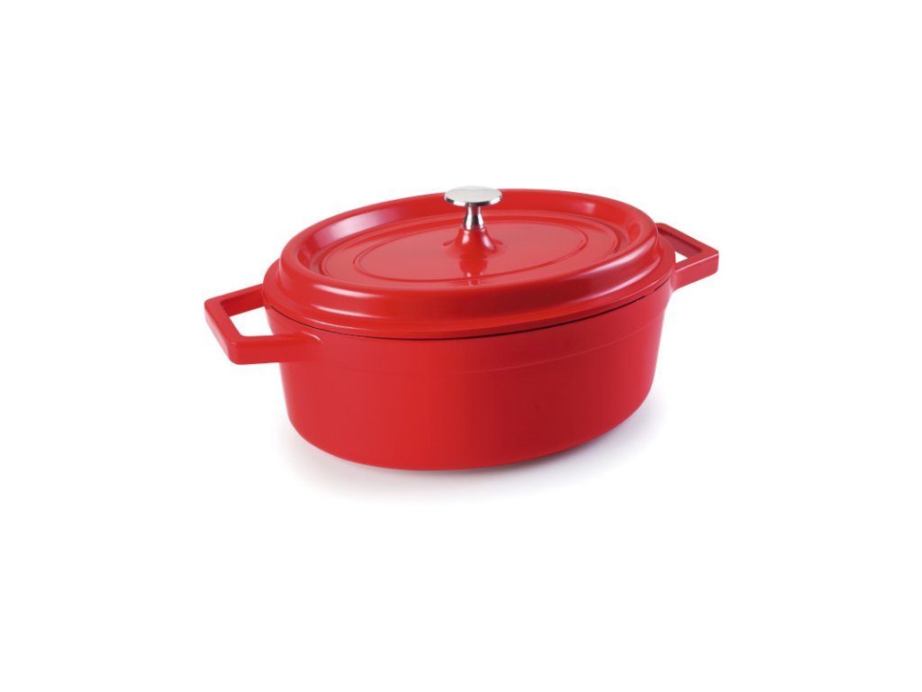 Tento oválný hrnec s rozměry 31 x 25 cm patří do kategorie větších hrnců a najde své uplatnění především v provozech, kde je důležité připravovat větší množství pokrmů s rovnoměrně rozloženou tepelnou energií. Je perfektní pro pomalé pečení ryb, pečené vepřové maso, zeleninové nákypy, ale i syté luštěninové směsi nebo tradiční kuchyni jako je svíčková či hovězí na víně. Byl vyroben z roztaveného hliníku, díky čemuž vyniká rovnoměrnou distribucí tepla – bez přepalování, bez ztráty tekutin. Hrnec tak zajišťuje, že potraviny zůstanou šťavnaté, s plným zachováním chutí, vitamínů i vůní. Vnitřní konstrukce poklice je navržená tak, aby kondenzační voda uvnitř nádoby kapala zpět na pokrm a neudržovala se na víku. Vaření s poklicí přispívá k pozvolnému zvlhčování pokrmů bez nutnosti dolévání vody či vývaru.