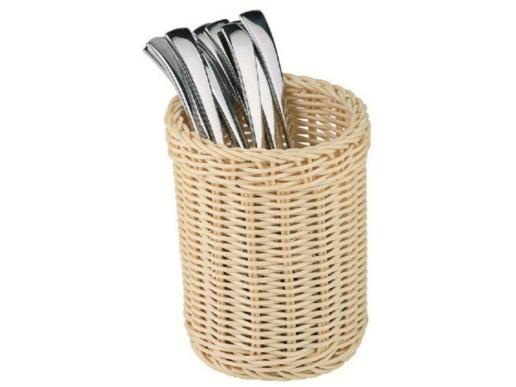 Polyratanový košík na příbory představuje praktického, ale zároveň vkusného pomocníka v každém gastronomickém podniku. Je snadno omyvatelný a poskytuje parádní prostor pro umístění příborů. Upoutá každé oko.Košík na příbory 12 cm, světlý