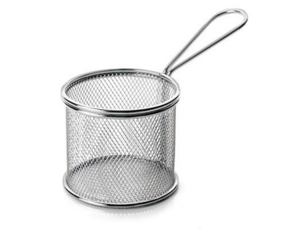Menší servírovací košík umožňuje smažit malé množství zeleniny, brambor, krevet nebo čehokoliv jiného. Také parádně poslouží k samotné prezentaci pokrmů na jídelním stole. K představování doporučujeme nejprve vložit olejový papír do košíku a až na něj umístit smažené jídlo. Tak dosáhnete jednoduchého a stylového efektu. Košík se vyrábí z kvalitní nerezové oceli a zajišťuje elegantní způsob prezentace vašich pokrmů.Košík nerezový servírovací 90 × 80 mm
