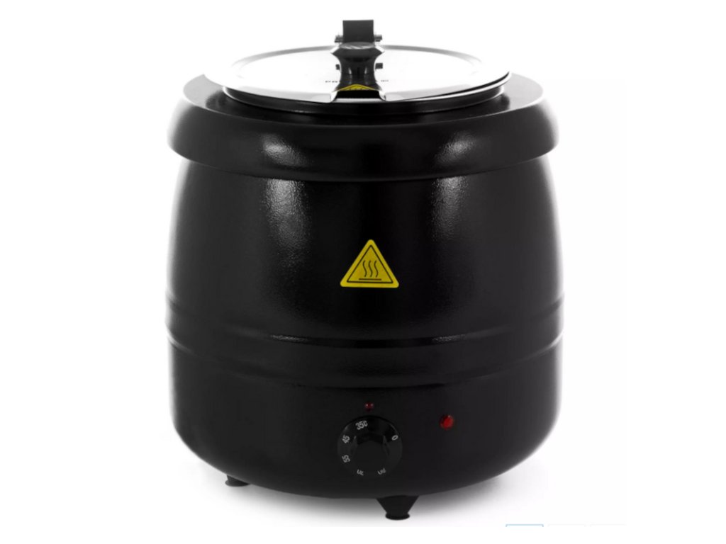 Tento kotlík v objemu 8 l je ideální vychytávkou pro ohřev i udržování teploty podávaných všelijakých polévek, ale také třeba různých omáček. Skvěle se hodí do gastro podniků a na akce, kde se podávají teplá jídla. Teplá polévka totiž představuje výborný předkrm před dalším jídlem, který uspokojí vaše zákazníky předtím, než sáhnou po dalších položkách z jídelního lístku. Kotel disponuje ohřívačem s termostatem zajišťujícím efektivní provoz a udržujícím maximální teplotu do 80 ºC . Díky použití vodního pláště se ingredience polévky nepřipalují ke dnu přístroje. Zařízení bylo navrženo s ohledem na vysokou funkčnost – má víko s pantem a výřezem na lžičku, což usnadňuje nanášení a míchání pokrmů. Pouzdro z lakované oceli zaručuje odolnost kotle a jeho snadné čištění. Vyjímatelná nádoba na polévku splňuje hygienické a bezpečnostní standardy pro stravování . Používejte velmi měkkou či měkkou vodu s tvrdostí do cca 1 mmol/l, tvrdší voda způsobuje vodní kámen na ohřívačích, který může způsobit poškození a ztrátu záruky.Kotlík na polévku elektrický 8 l