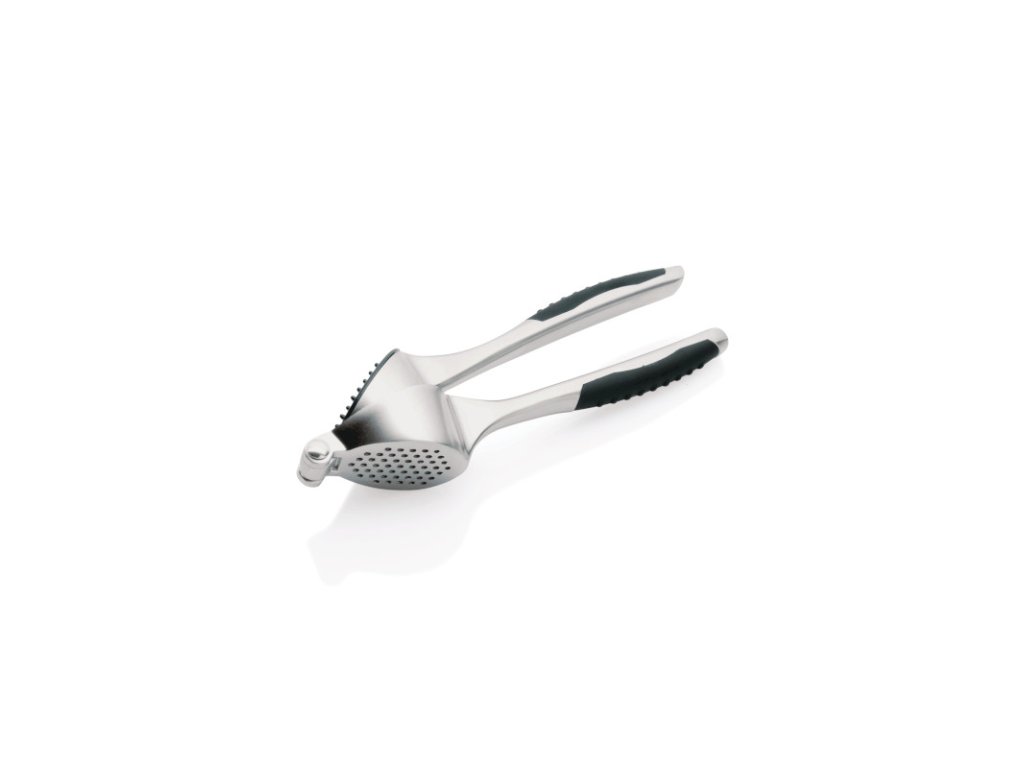 Pozinkovaný lis na česnek s rukojetí s plastovými vložkami pro pohodlnější použití. Hravě si poradí s každým stroužkem česneku.Lis na česnek, pozinkovaný 17 cm