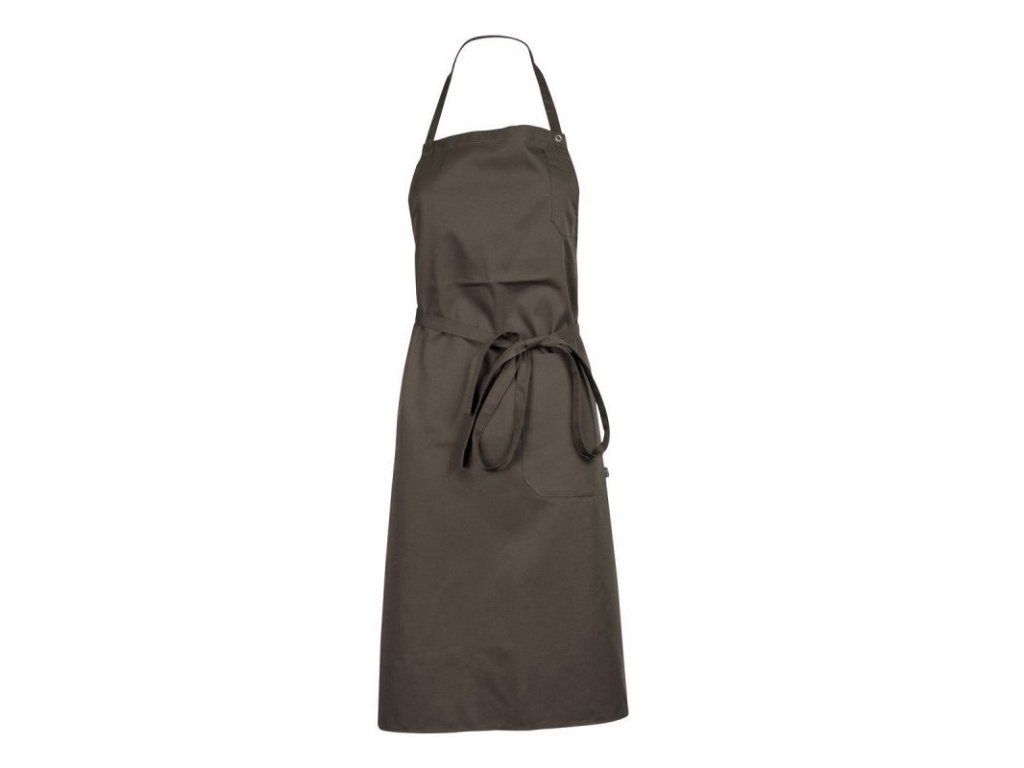Kuchyňská zástěra Loti skvěle poslouží mužům i ženám. Má k dispozici kapsu na levé straně, nastavitelný popruh na krk pomocí druků a zavazování v pase. Lze ji prát v pračce.