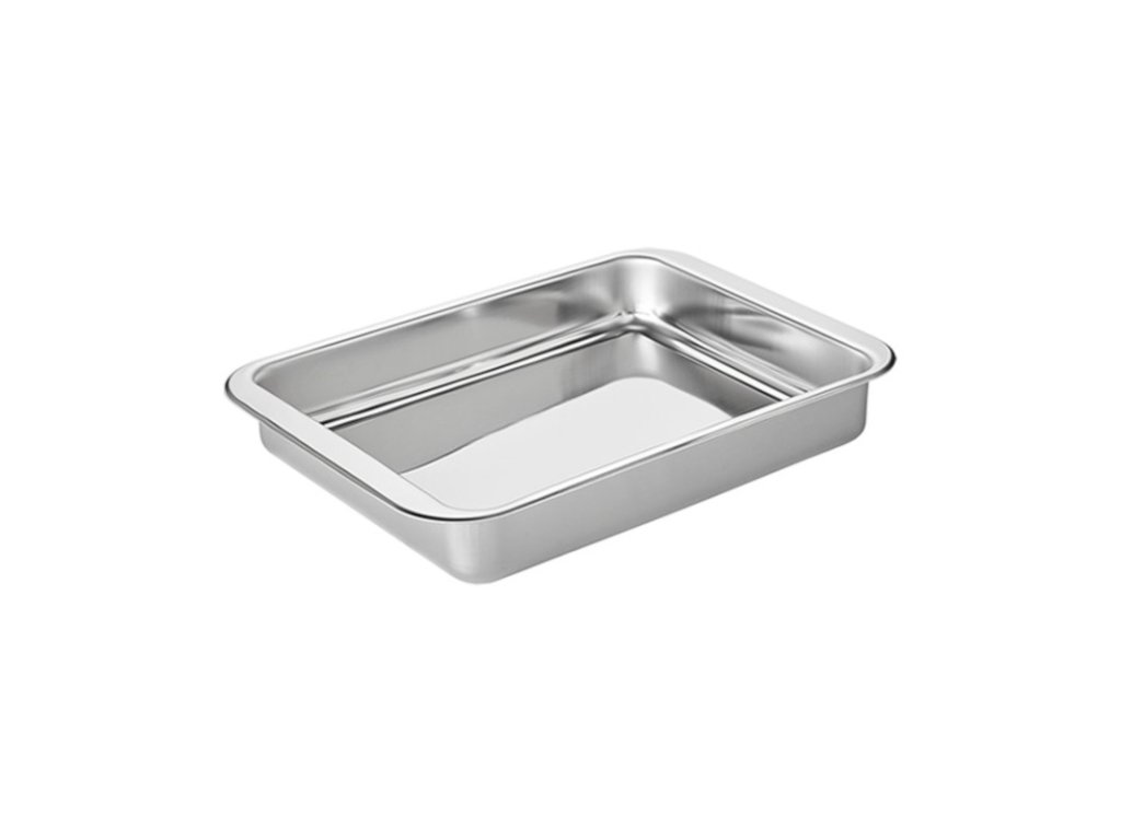 Elegantní obdélníkový plech vyrobený z kvalitní nerezové oceli je ideální na různé pečené pokrmy. Disponuje vestavěnými rukojeťmi. Odolává běžným teplotám v troubě. Představuje skvělou volbu pro podávání jídla přímo na stůl.Plech na pečení, nerez 30 cm