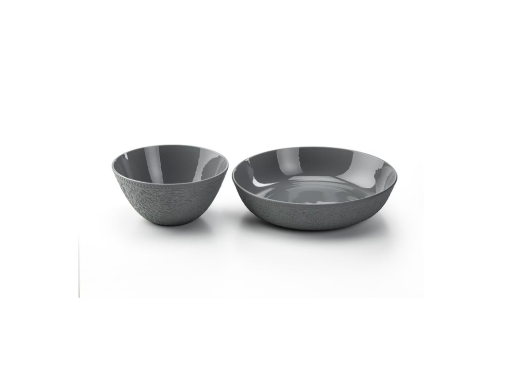 Tato kolekce přináší čistou krásu šedého porcelánu připomínajícího beton s vnějším dekorem na vaše jídelní stoly. Tmavé barevné provedení nechá parádně vyniknout vaše kulinářské speciality a pěkný design dodá tu pravou šťávu. Odolnost porcelánu se postará o prvotřídní kvalitu.Výrobce