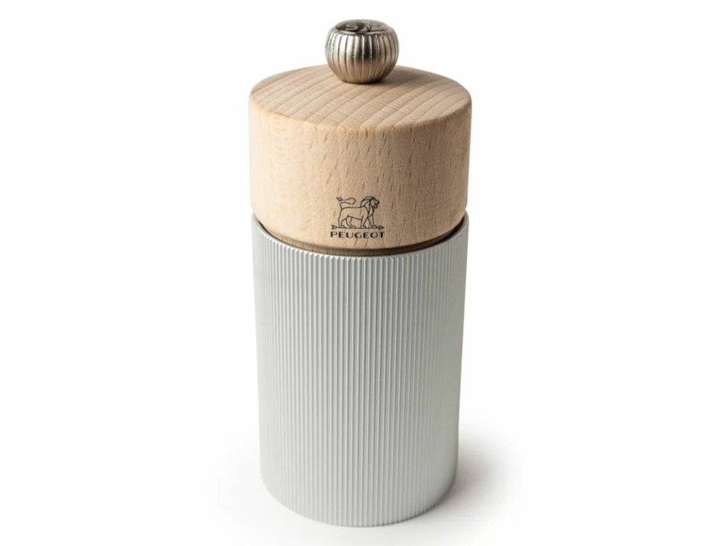 Kolekce LINE kombinuje dvě protichůdné energie – hřejivé bukové dřevo a chladně působící eloxovaný hliník. Výsledkem je vizuální kontrast, který přitáhne pozornost hostů i kuchařů. Charakteristické drážkování horní části odkazuje na severské inspirace a dodává mlýnku nezaměnitelný vzhled. Uvnitř se nachází mlecí mechanismus, který je srdcem každého mlýnku Peugeot – kvalitní konstrukce z kalené oceli navržená výhradně pro pepř. Zvládne černý, bílý, zelený pepř i červený pepř do 15 % podílu ve směsi. Tělo mlýnku je vyrobeno z bukového dřeva pocházejícího z francouzských lesů s certifikací PEFC™, která zaručuje šetrné a odpovědné lesní hospodaření. Povrchová úprava neobsahuje žádná rozpouštědla. Výška 12 cm umožňuje snadnou skladnost, což ocení jak obsluha v restauraci, tak kuchaři v otevřených kuchyních nebo bufetových provozech.Technické parametry