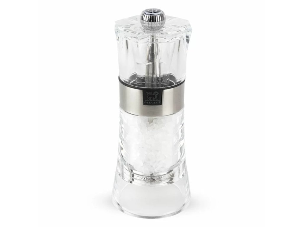 Na pohled odlehčený, při používání maximálně efektivní. Mlýnek Oslo spojuje transparentní tělo z odolného akrylu s prvky z nerezové oceli. Průhlednost mlýnku vám zajistí přehled o tom, zda sůl nedochází. Hladký povrch se jednoduše udržuje a samotný tvar dobře padne do ruky – ať už obsluhujete salátový bufet, dochucuje si pokrm sám host nebo připravujete výdejní linku. Uvnitř naleznete spolehlivý mlecí mechanismus značky Peugeot, navržený na sůl o velikosti zrn do 4 mm (kamenná nebo sušená mořská sůl). Nastavení hrubosti provedete utažením horní matice. Všechny mlýnky této značky vznikají s důrazem na kontrolu původu materiálů – dřevo pochází z lesů s certifikací PEFC a laky neobsahují zdraví škodlivá rozpouštědla.Technické parametry