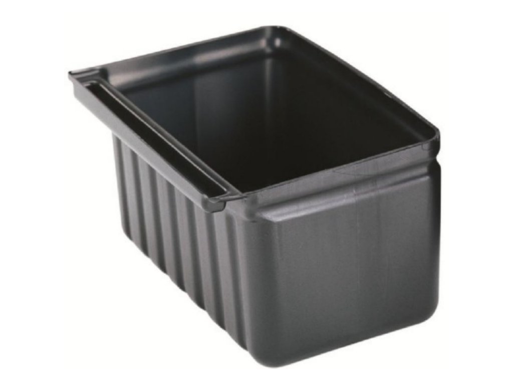 Tento parádní černý držák slouží k umístění příborů. Objem 9,5 litrů připevníte k užitkovým vozíkům R-BC331KD480 a R-BC340KD480, abyste pohodlně přepravovali použité příbory po celém vašem podniku. Vyrábí se z odolného polyetylenu.Nádoba na příbory