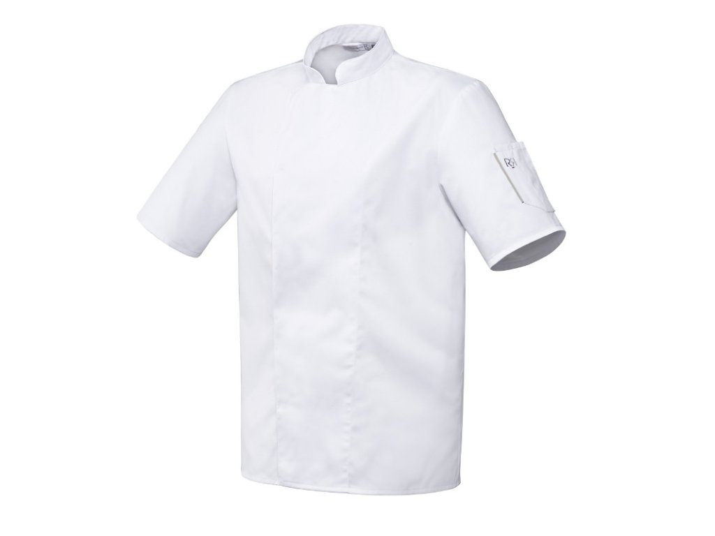 Moderní rondon s krátkým rukávem v klasickém, univerzálním střihu. Díky pohodlné a zároveň lehké, prodyšné látce a nachází uplatnění v restauracích, hotelech a banketních sálech. Najdete na něm svinovací manžety a kapsu na levém rukávu pro pero, která má ozdobné kontrastní zakončení.Rondon, bílý, kr. rukáv, XXL