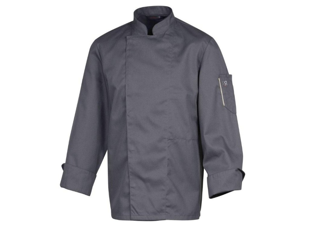 Moderní rondon s dlouhým rukávem v klasickém, univerzálním střihu. Díky pohodlné a zároveň lehké, prodyšné látce a nachází uplatnění v restauracích, hotelech a banketních sálech. Najdete na něm svinovací manžety a kapsu na levém rukávu pro pero, která má ozdobné kontrastní zakončení.Rondon, šedý, dl. rukáv, XXXL