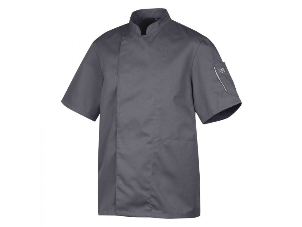 Moderní rondon s krátkým rukávem v klasickém, univerzálním střihu. Díky pohodlné a zároveň lehké, prodyšné látce a nachází uplatnění v restauracích, hotelech a banketních sálech. Najdete na něm svinovací manžety a kapsu na levém rukávu pro pero, která má ozdobné kontrastní zakončení.Rondon, šedý, kr. rukáv, XS