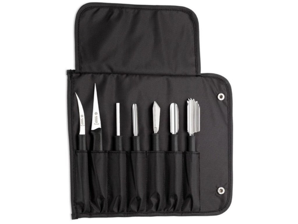 Sestava dekoračních nožů v praktickém pouzdře. Skvěle se hodí pro doladění estetického vzhledu vašich podávaných pokrmů. V sadě najdete 7 druhů různých nožů, díky kterým vymazlíte podávané pokrmy k dokonalosti. Připravíte neodolatelně vypadající zeleninovou oblohu a mnoho dalších špičkových jídel.Nože dekorační sestava