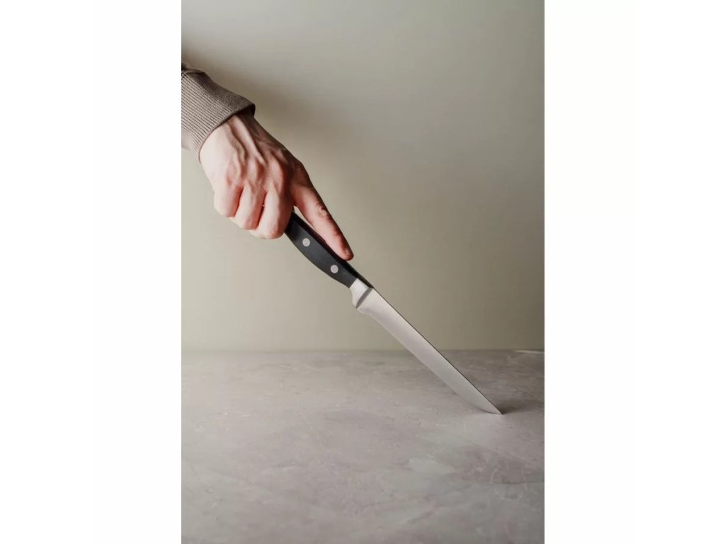 Oddělit maso od kosti není jen o síle. Je to o přesném pohybu, kontrole a ostří, které vede vaši ruku. Vykosťovací nůž JustCut je nástroj, který se v těchto situacích osvědčí naplno – prohnutá čepel se přirozeně přizpůsobí tvaru masa a dovolí vám pracovat rychle a bez zbytečných ztrát. Díky délce 15 cm je ideální pro zpracování menších kusů masa, ryb i drůbeže. Celokovaný nůž z jednoho kusu oceli je vyvážený, stabilní a pevný, přesně jak to při porcování potřebujete. Ať už v kuchyni řešíte každodenní provoz, catering, nebo řeznické úpravy – tohle je nůž, který pracuje s vámi.