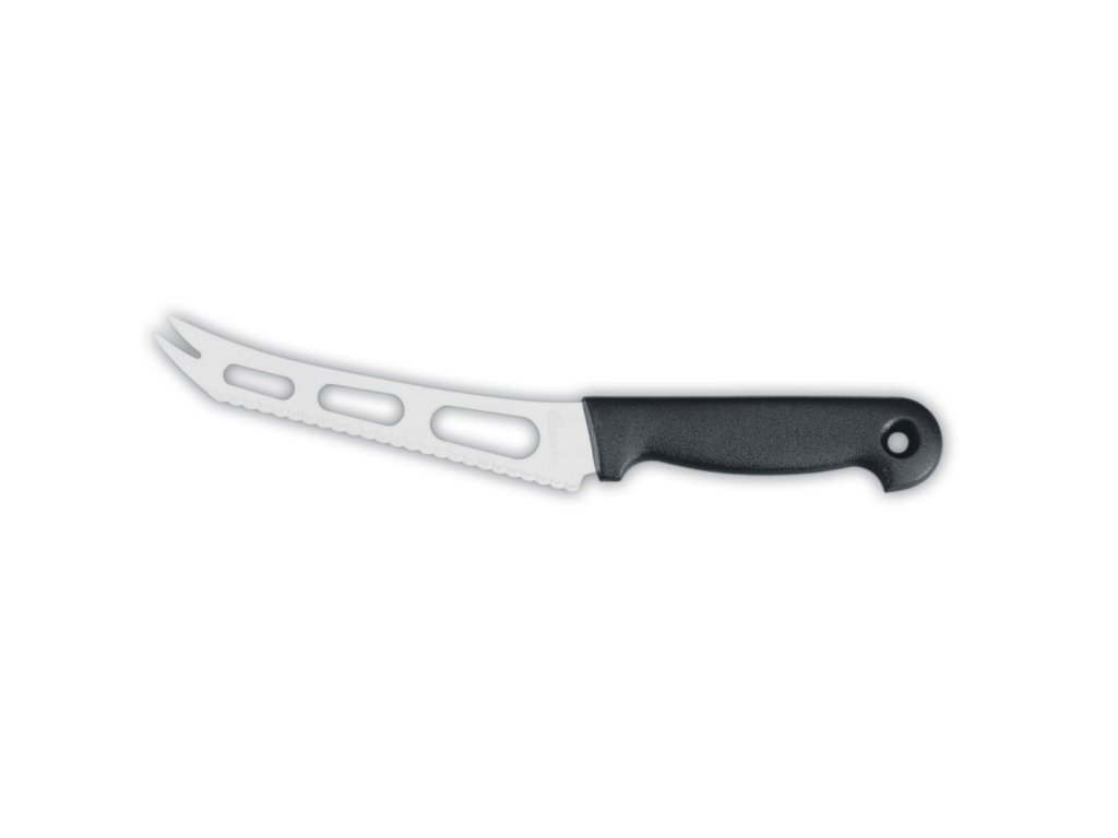 Nůž na sýr s délkou čepele 15 cm parádně pomůže při krájení sýru. Vyrábí se v černém provedení. Kvalitní nerezová ocel vysoké tvrdosti dává nožům jedinečné vlastnosti, které ocení jak profesionální, tak amatérští kuchaři.Nůž na sýr 15 cm