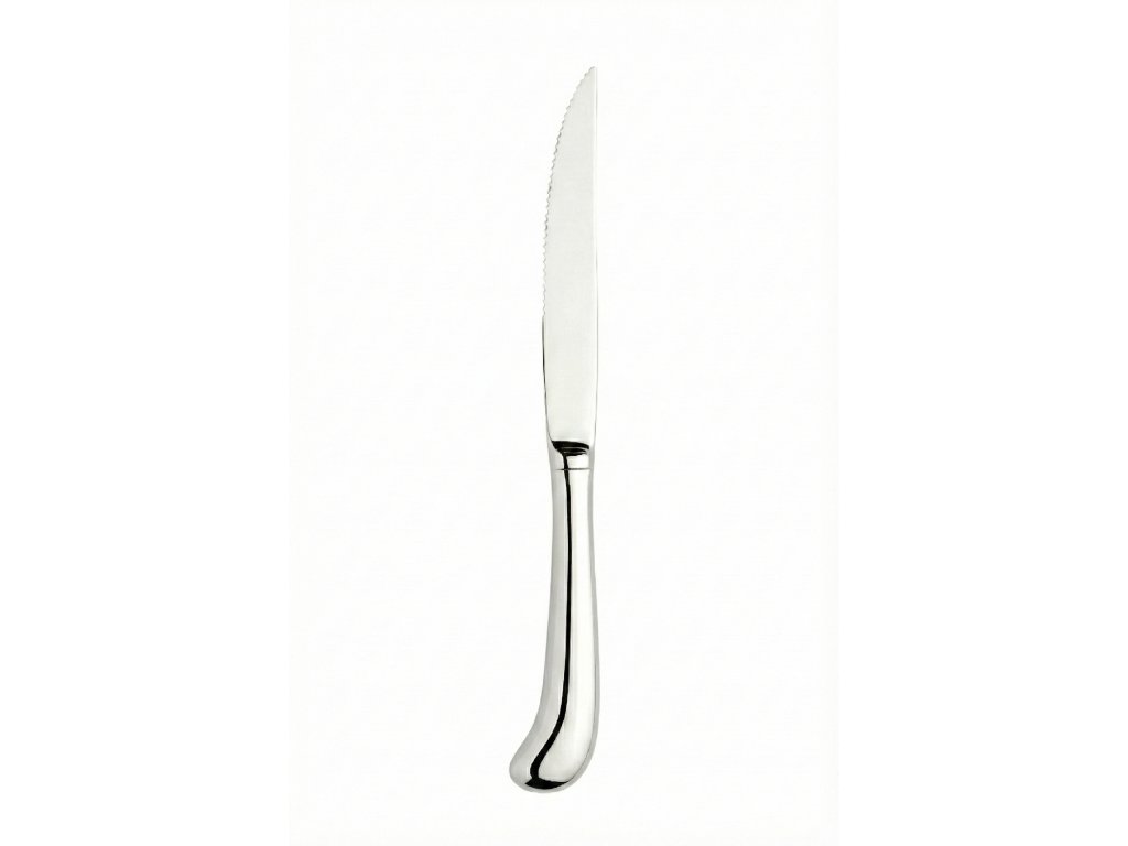 Elegantní nůž na steak se stane nejen nezbytným kouskem vaší sady příboru, ale také atraktivním doplňkem jídelních stolů, protože jeho naleštěný vzhled zkombinujete s jakýmkoliv porcelánem. Je také speciálně tvarovaný, aby bylo krájení snadnější. Nůž se vyrábí z prvotřídní nerezové oceli 18/10, která zaručuje vysokou odolnost a dovoluje ho umýt v myčce. Kvalitní materiál také garantuje, že vám příbor vydrží spoustu let.
