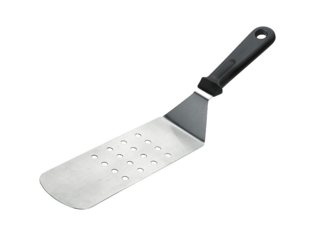 Tato perforovaná lomená obracečka či lopatka vyrobená z kvalitní nerezové oceli 18/10 najde své využití při vaření i pečení různých pokrmů. Plastová rukojeť zaručuje výbornou ergonomii a pohodlí při použití.Obracečka perforovaná 21,5 × 7,5 cm