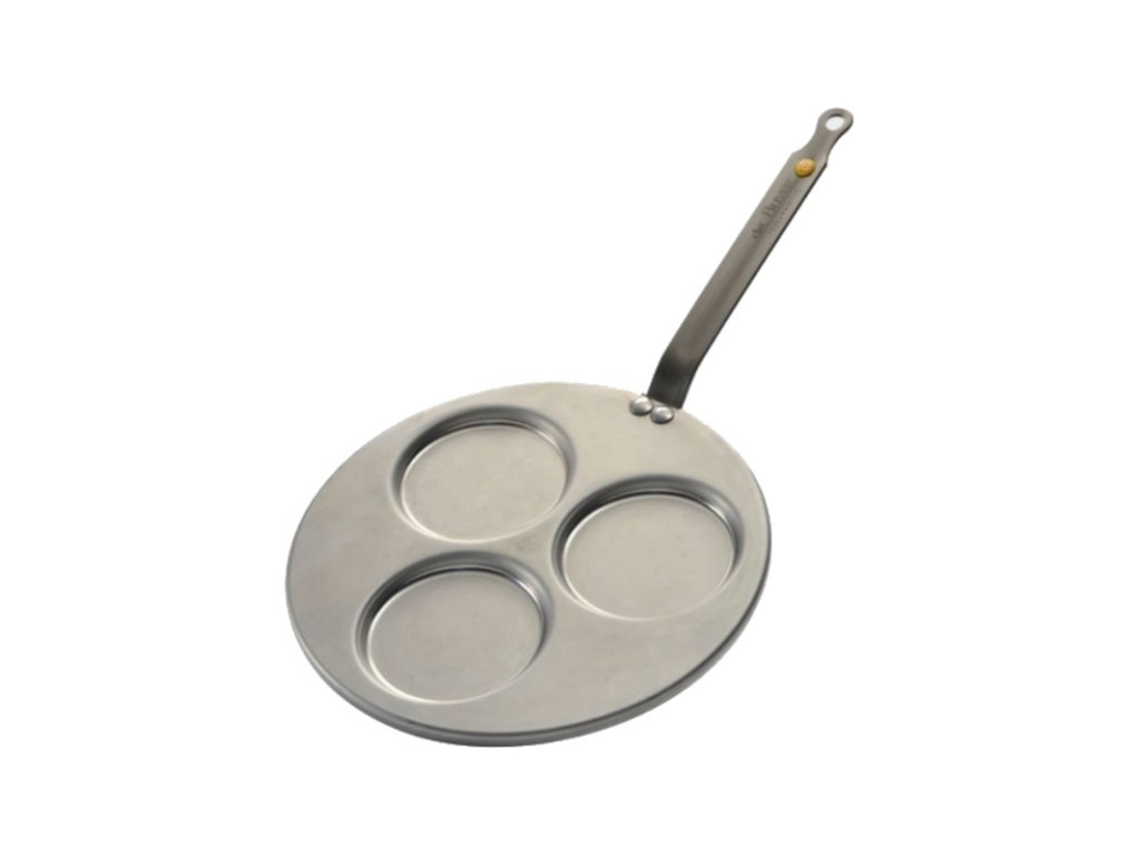 S lívanečníkem od značky de Buyer zvládnete připravit až tři lívance nebo menší palačinky o průměru 10 cm najednou. Jedná se o nedeformovatelné náčiní Mineral B ve vysoké kvalitě železa potažené včelím voskem – ochranná úprava proti oxidaci. Má přirozené nepřilnavé vlastnosti již při prvním použití. Důležité informace: Nepatří do myčky a nesmí se umývat čisticími prostředky. Můžete ho používat na plynovém i elektrickém sporáku, sklokeramické desce nebo na indukci. Tip: Předehřejte s trochou tuku.