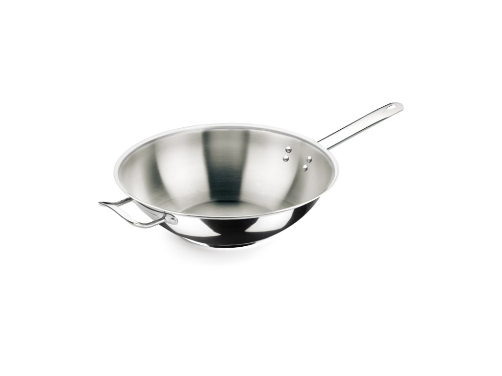 Pánev WOK ve vaší kuchyni oceníte, pokud připravujete jídla s malým množstvím tuku. Na její výrobu se používá špičková nerezová ocel 18/10, která zaručuje odolnost proti korozi. Manipulaci vám usnadní masivní nýtovaná rukojeť společně s druhou ručkou.Pánev WOK nerezová 30 cm