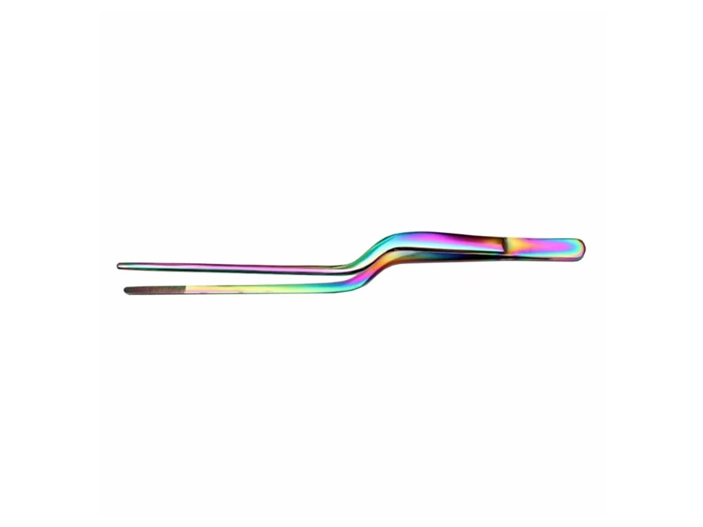 Kuchařská pinzeta slouží k přesné a titěrné manipulaci s potravinami. Hodí se pro ty nejmenší kousky, jako jsou bylinky, zrnka, klíčky či kvítky, až po potraviny větších rozměrů např. pro otáčení kousků masa ne sushi. Pomůže i při servírování a zdobení vašich pokrmů. Titanové provedení jí dodává na odolnosti a vysoké kvalitě.Pinzeta lomená