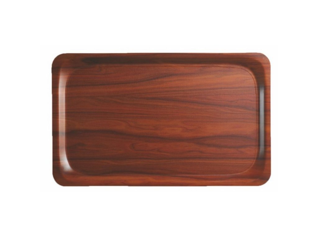 Vyberte si stylový, cenově dostupný protiskluzový podnos z kolekce Mykonos pro bezpečné servírování jídel a nápojů. Ušetřete na nákladném rozbití pomocí čirého protiskluzového povrchu, který se po celou dobu životnosti podnosu neopotřebí, takže je ideální pro bary, bankety, restaurace i jiné podniky. Podnosy mají vyvážený design se schopností sladit se s jakýmkoli moderním dekorem a vybrat si můžete z masivních a teplých vzorů dřeva. Umývejte je pouze ručně a mezi jednotlivými použitími je snadno otřete, abyste dosáhli hygienického prostředí pro stravování.Výrobce