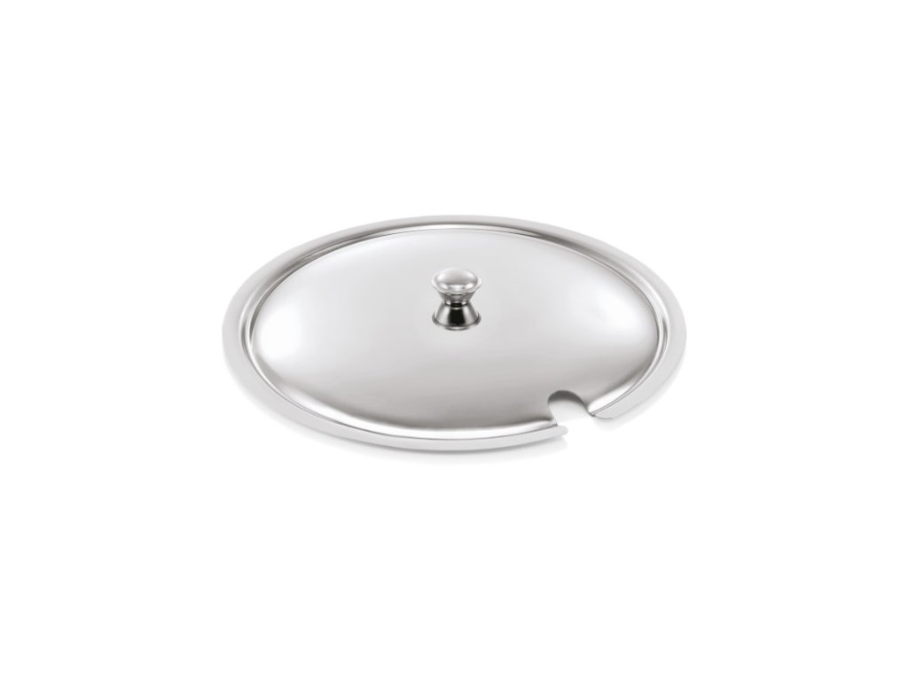 Tato nerezová poklice s prohlubní na lžíci představuje praktického pomocníka pro servírování polévek. Je určená pro mísu na polévku o objemu 4,5 litrů a průměru 29 cm (A-147-2).Poklice pro mísu na polévku 29 cm