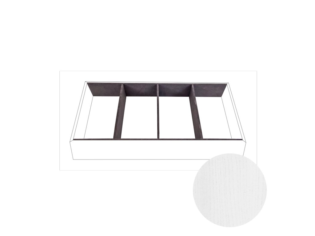 - 1 přepážku se 4 přihrádkami (rozměr: 510 × 304 × 62 mm)