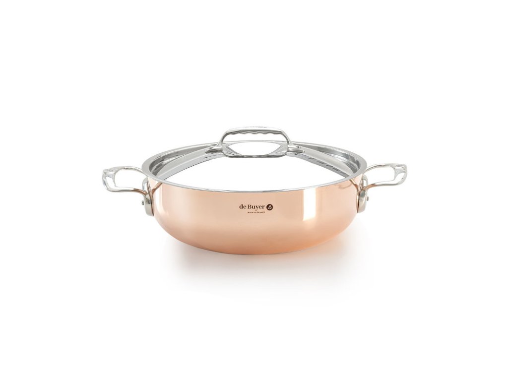 Tato elegantní pánev je ideální pro dušení a celkovou přípravu omáček, ale i prezentaci v otevřené kuchyni. Vyrábí se z 90% mědi na vnější straně se stará o vynikající tepelnou vodivost pro dokonalou kontrolu vaření. Zbývajících 10 % patří nerezové oceli na vnitřní straně, která je dokonale potravinářská a zajišťuje eliminaci potřeby přecínování mědi – nízký podíl nerezové oceli, která nemění vlastnosti mědi. Pánev disponuje 2 nýtovanými úchyty v moderním designu vyrobených z nerezové oceli, a ty se postarají o snadnou manipulaci. Speciální měděná základna je vhodná pro vaření na jakékoliv varné desce, včetně indukce. Péče o měď: Použijte leštící pastu. Péče o nerez: Ruční mytí.Pánev na soté měděná s poklicí, dva úchyty